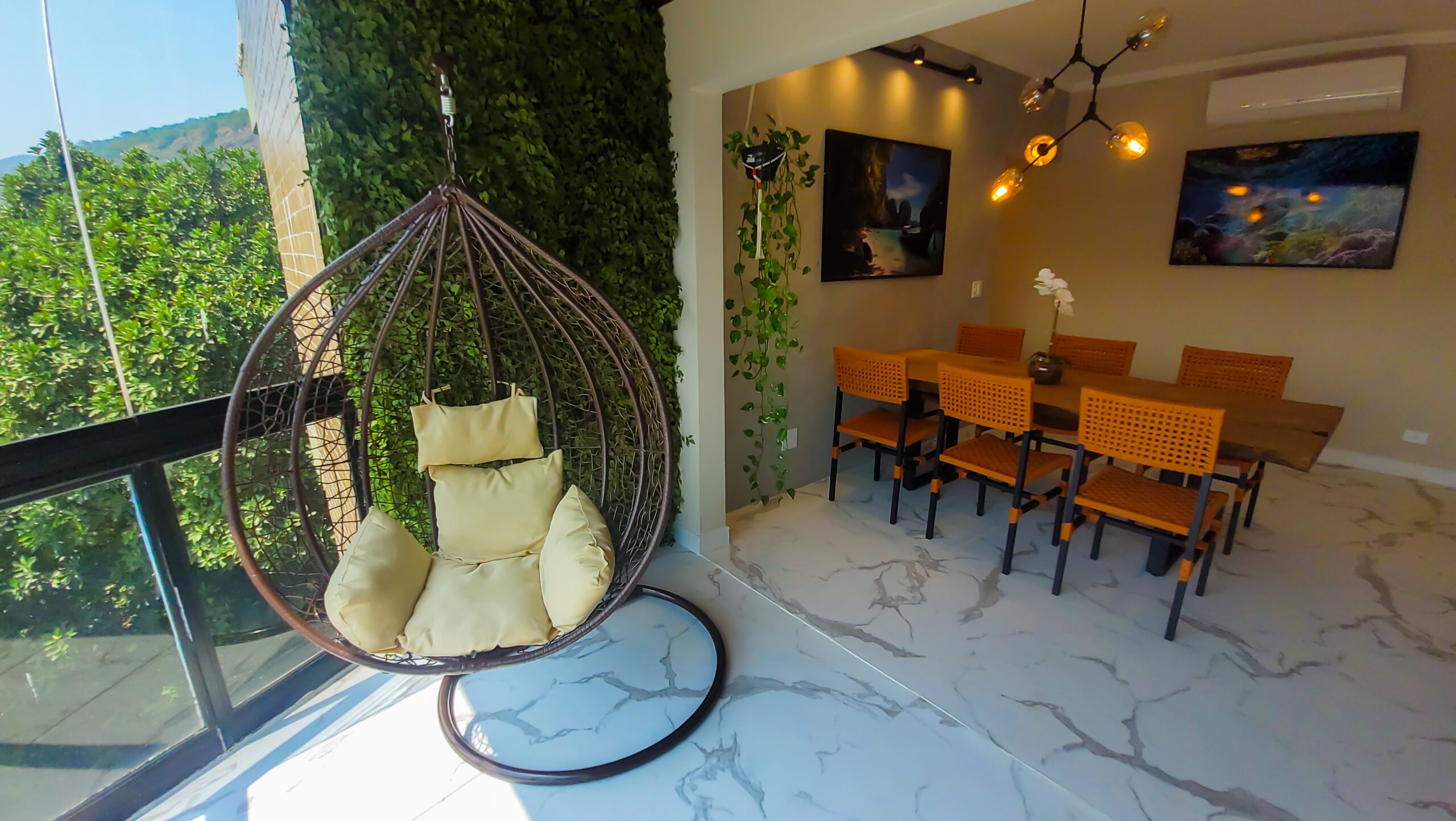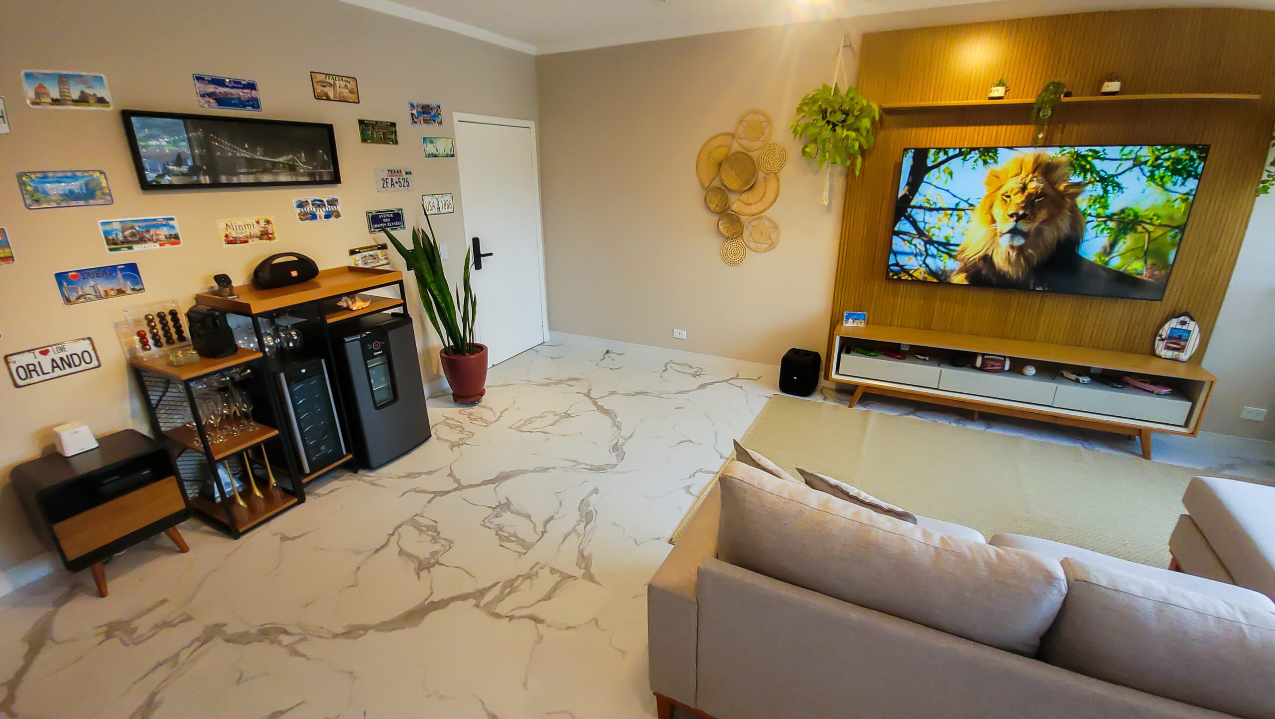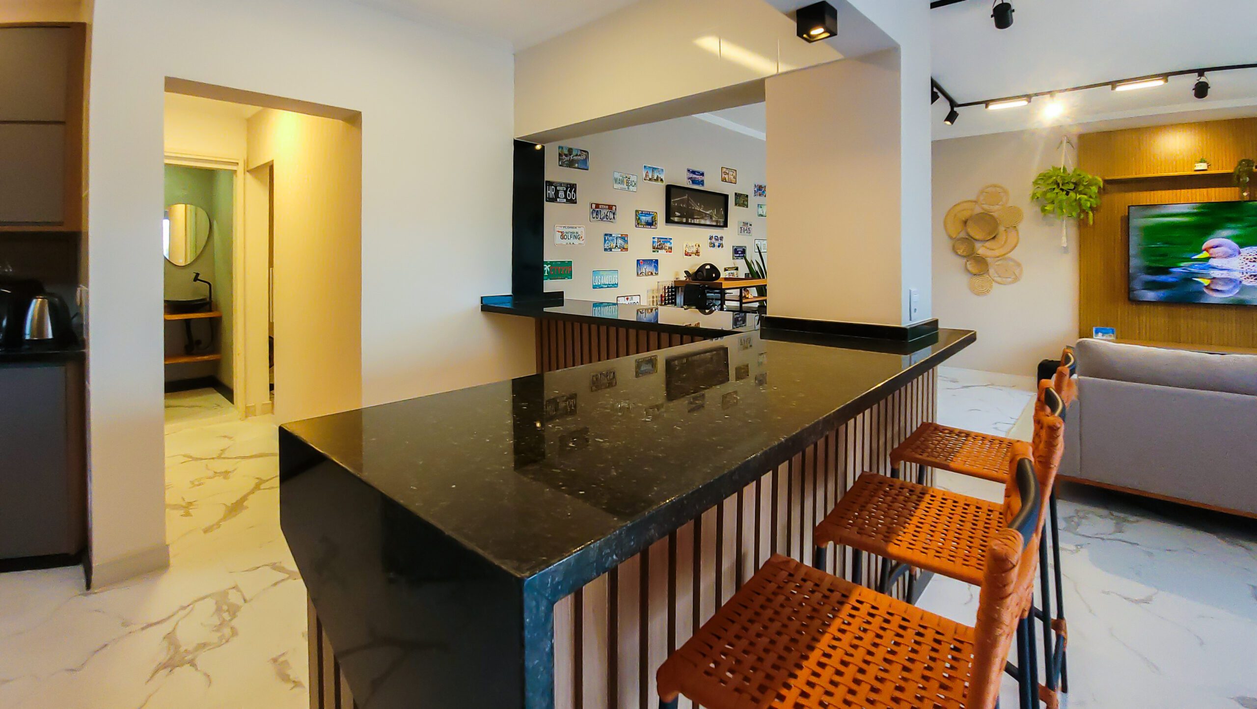Além disso, o apartamento é totalmente conectado, com internet de alta velocidade em todas as áreas, e a tecnologia Alexa automatiza o controle do ar-condicionado e das luzes de entrada, proporcionando uma experiência moderna e prática para o seu dia a dia.