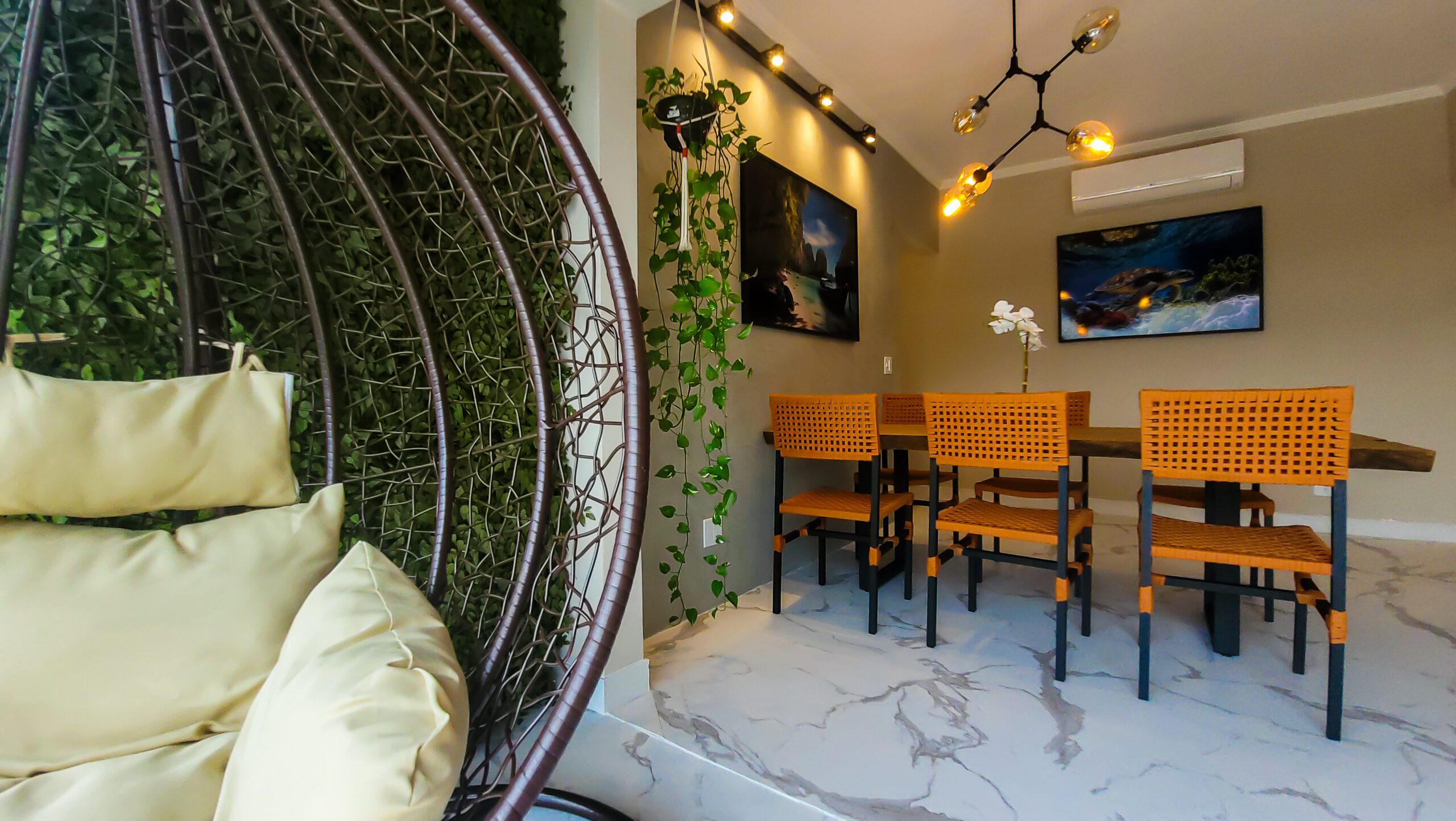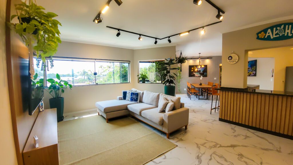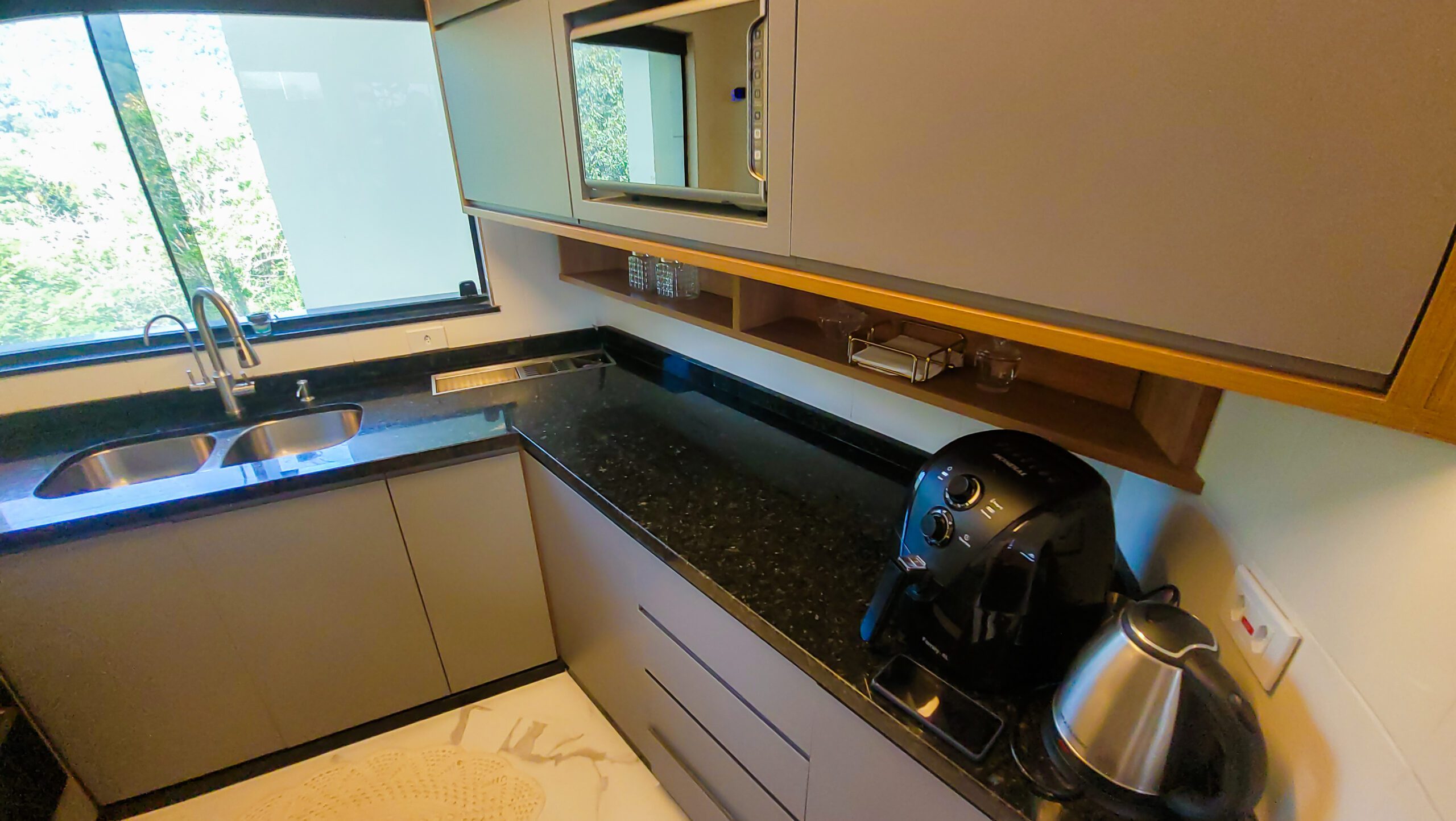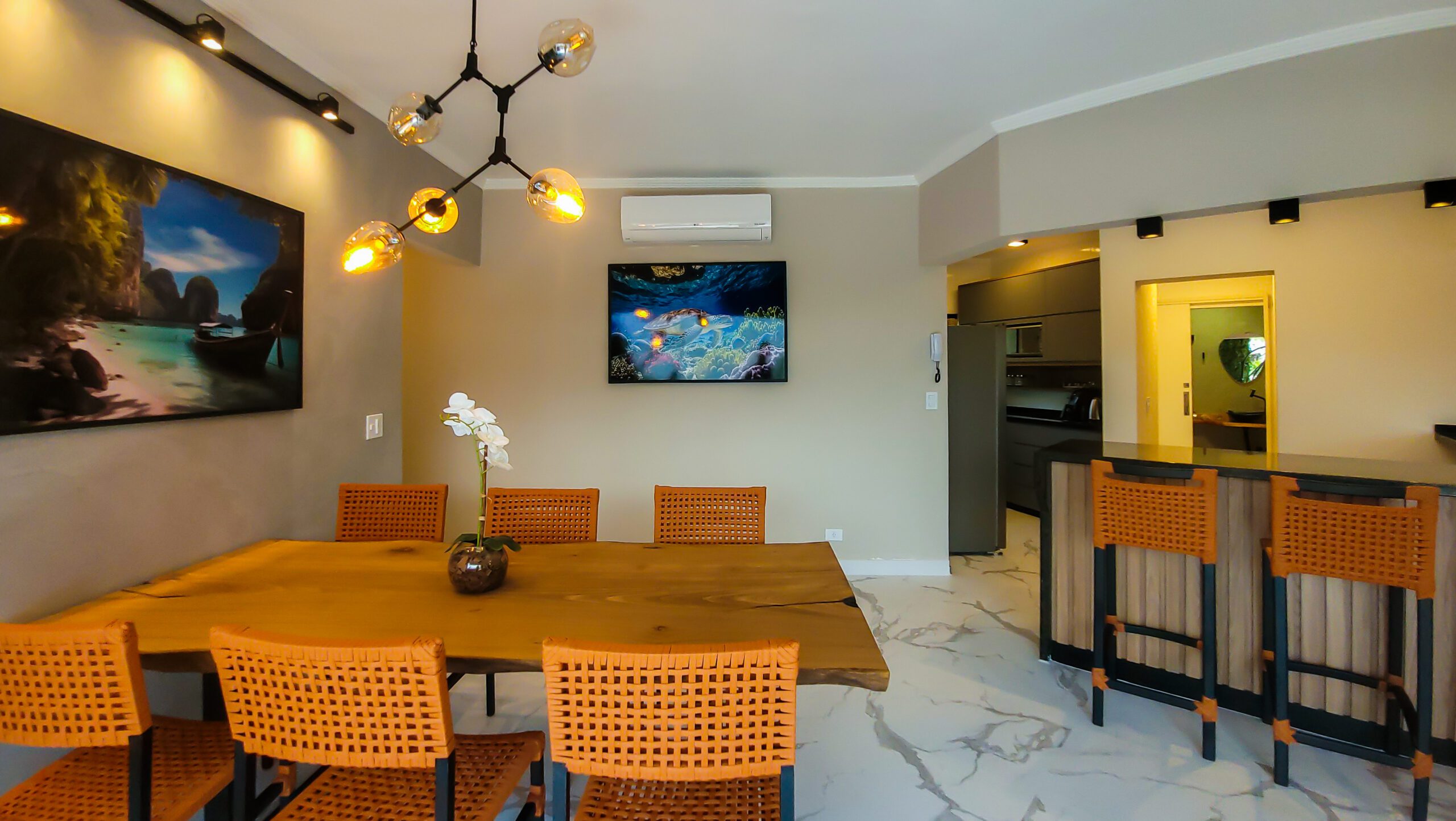 Além disso, o apartamento é totalmente conectado, com internet de alta velocidade em todas as áreas, e a tecnologia Alexa automatiza o controle do ar-condicionado e das luzes de entrada, proporcionando uma experiência moderna e prática para o seu dia a dia.
